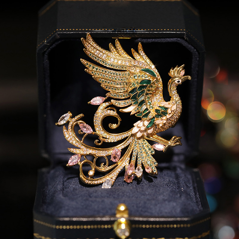 22222#Fashion Retro Jewelry Art Exhibition Luxury Brooch European and American Colorful Nirvana Phoenix Broch