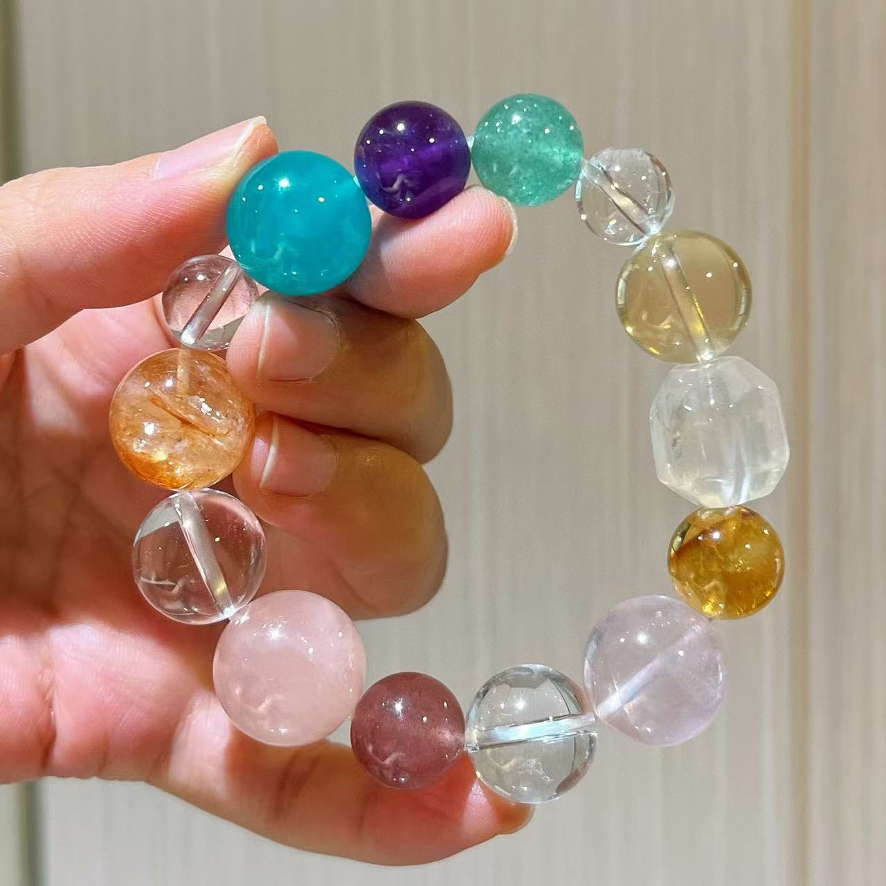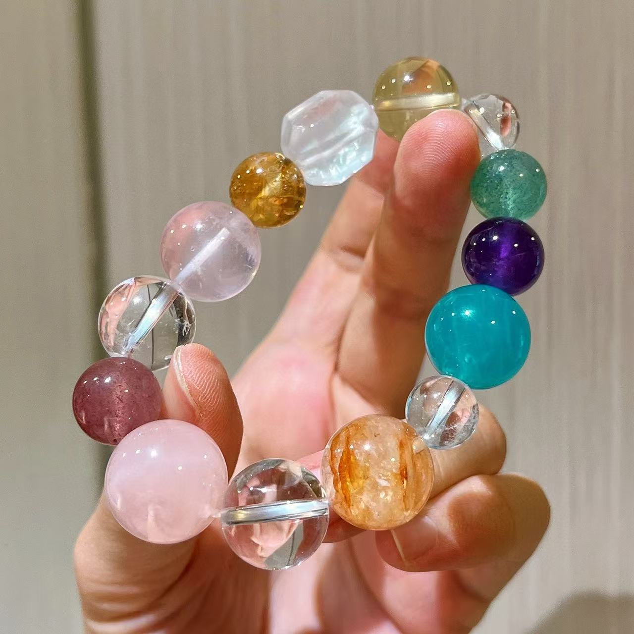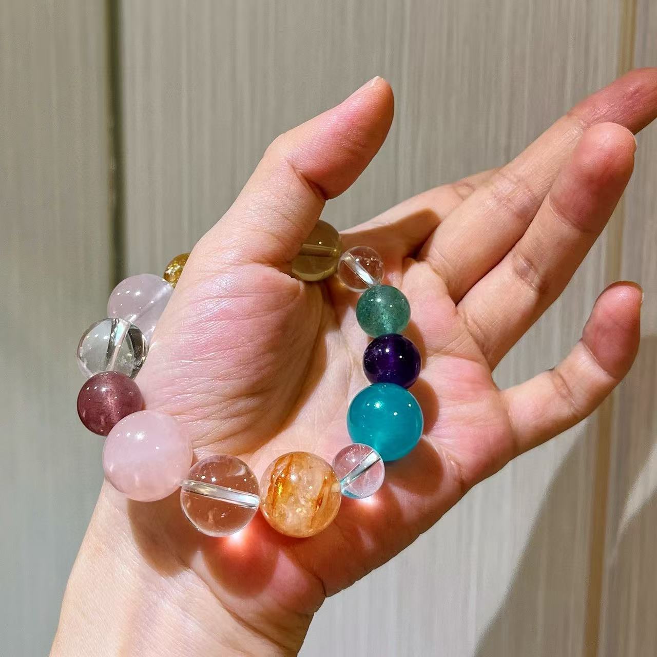 410#10-16mm Natural High Quality Amethyst Lemon Yellow Crystal Pink Crystal Gel Flower White Crystal Bracelet