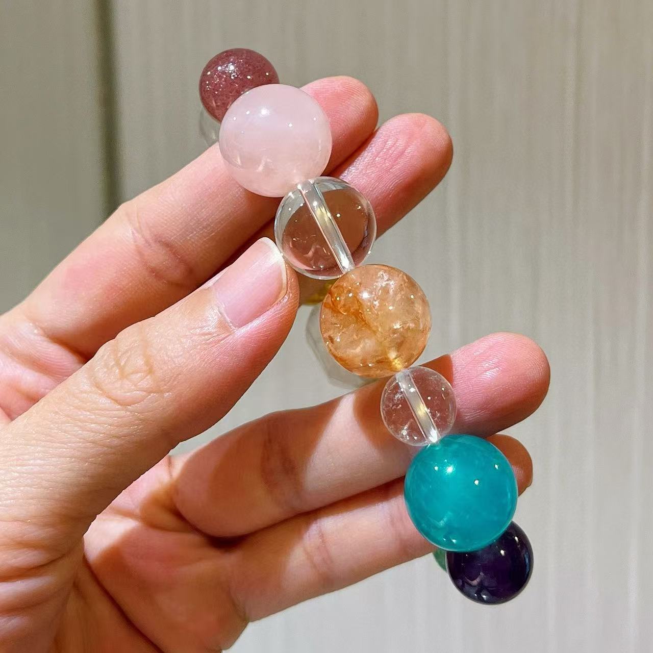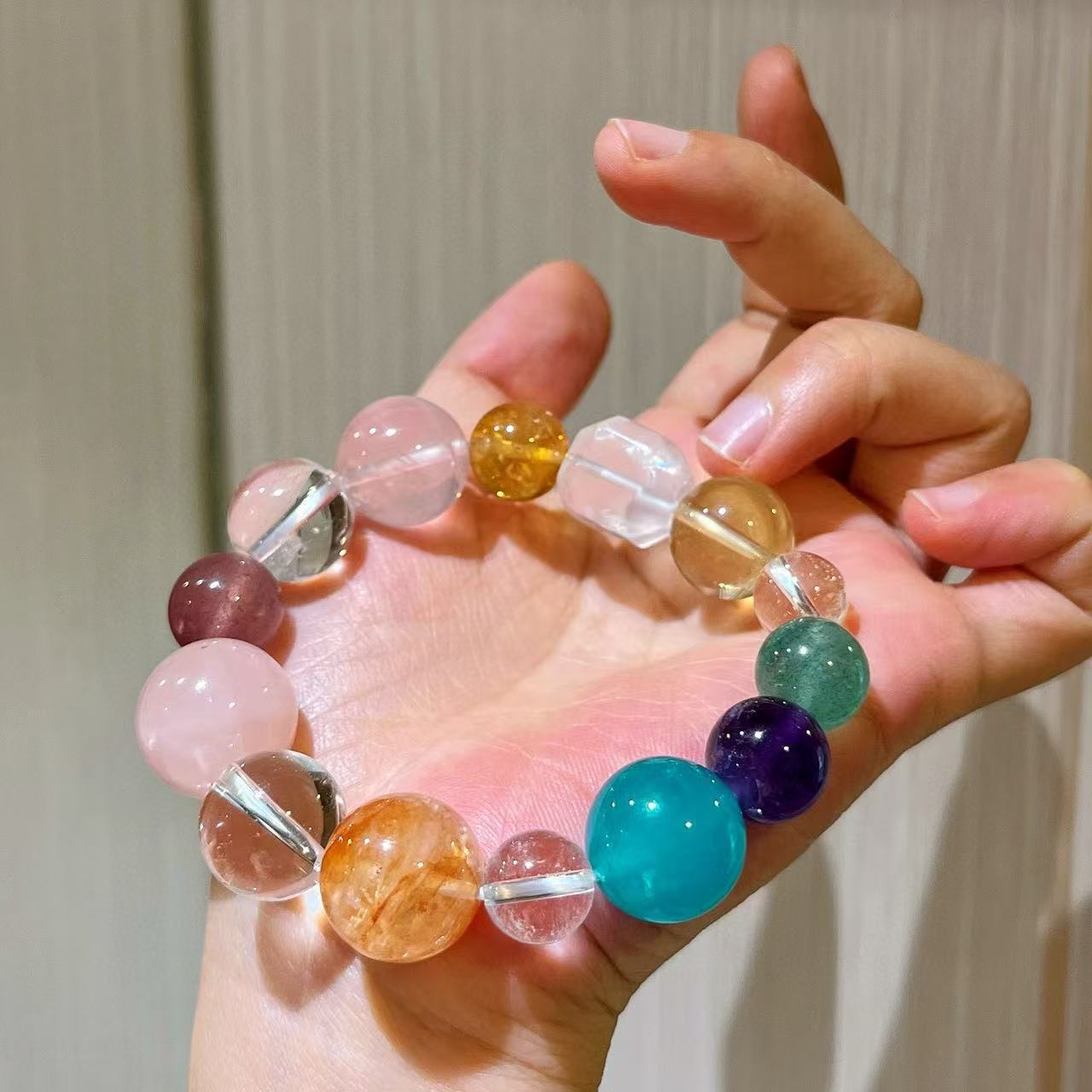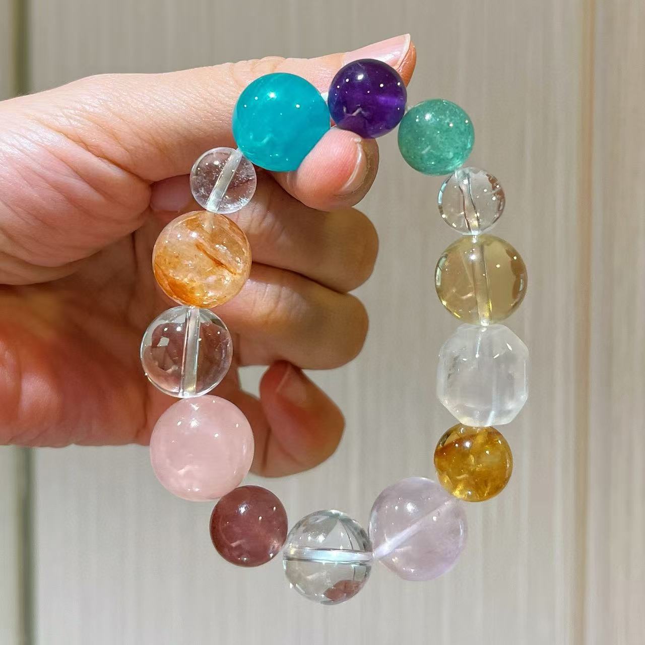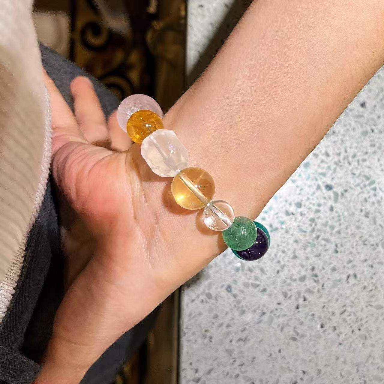 410#10-16mm Natural High Quality Amethyst Lemon Yellow Crystal Pink Crystal Gel Flower White Crystal Bracelet