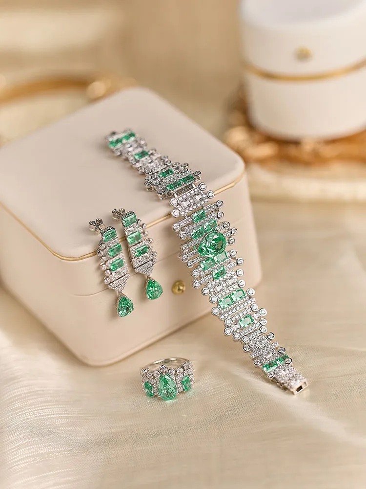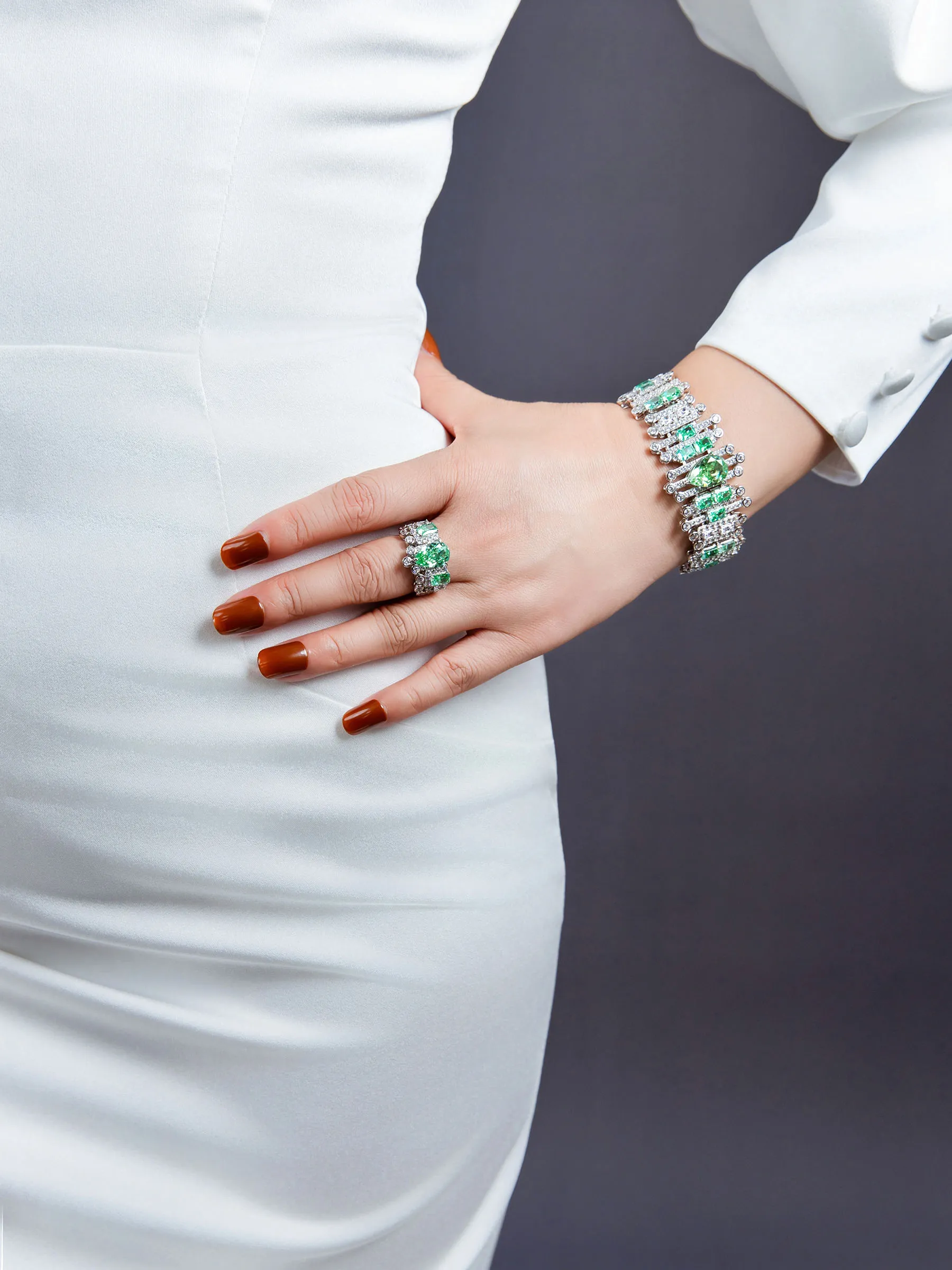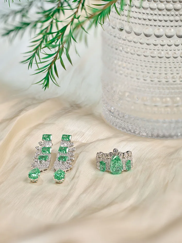 Main gemstone of the product: 3.5 carats for the ring / 7 carats for the earrings