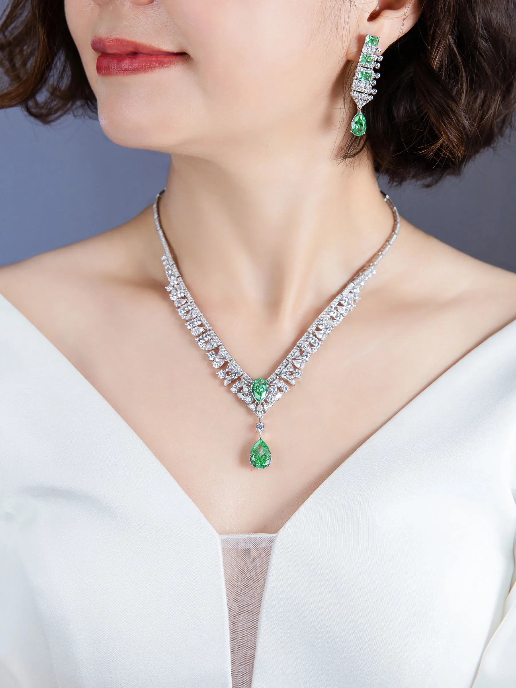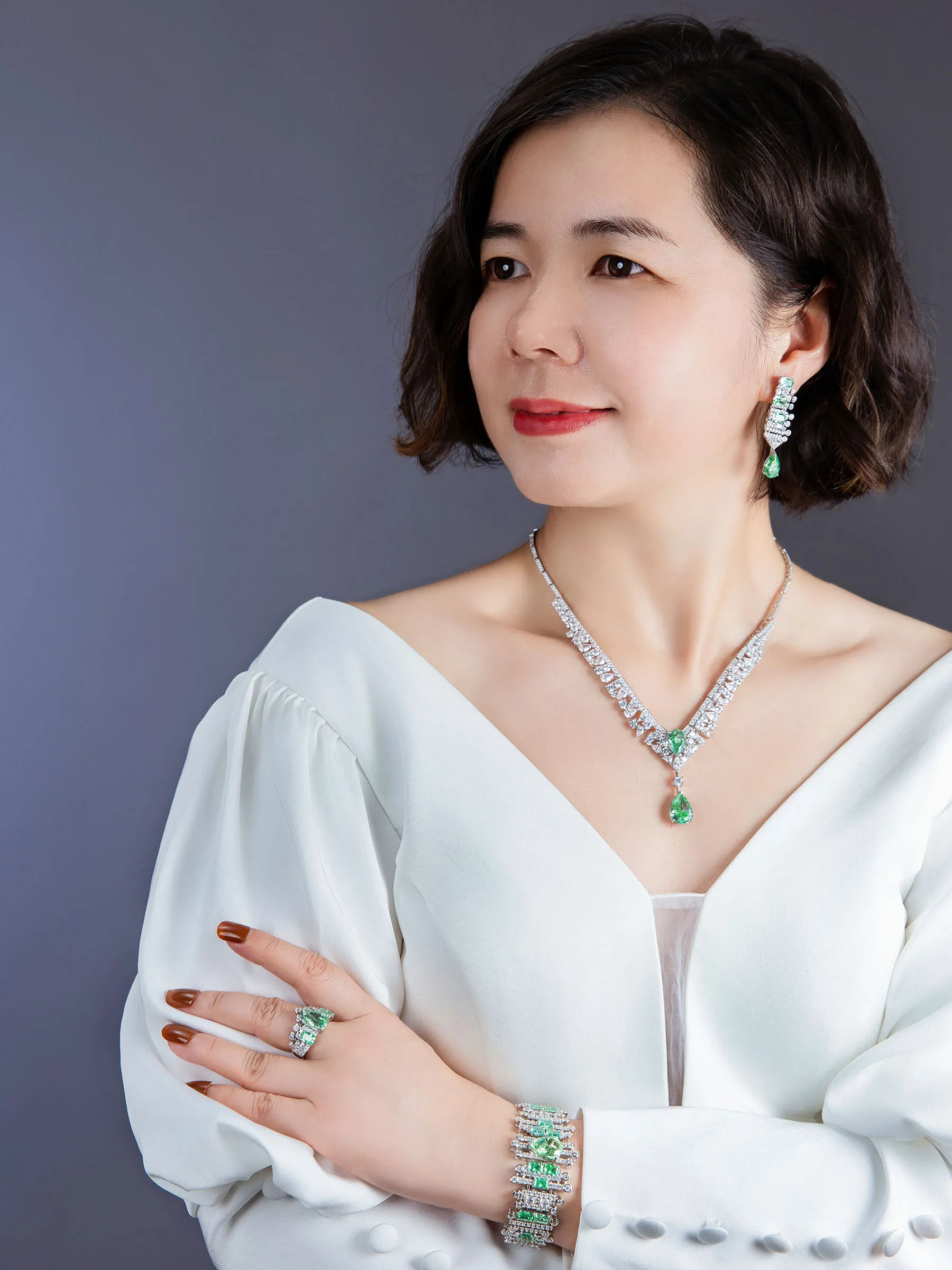 #424 S925 silver-gilded gold evening lady’s Paráiteba color ring, earrings and necklace