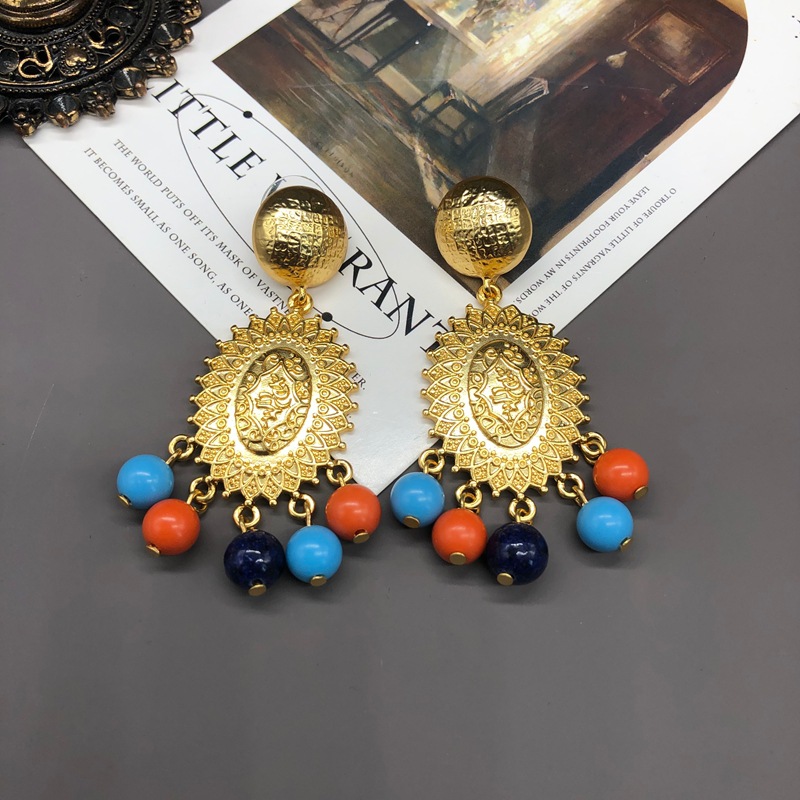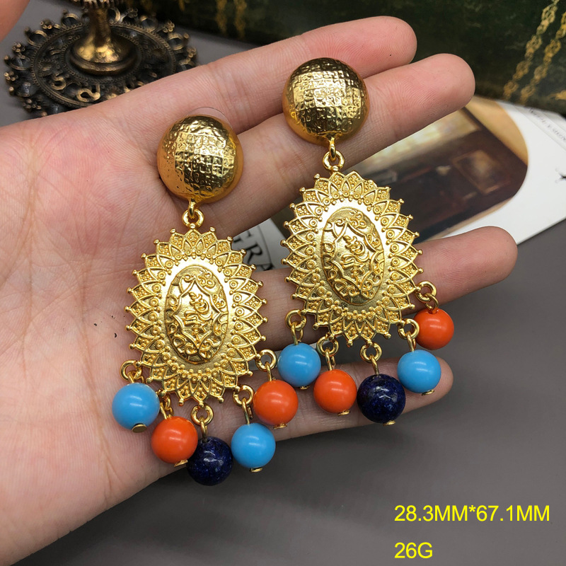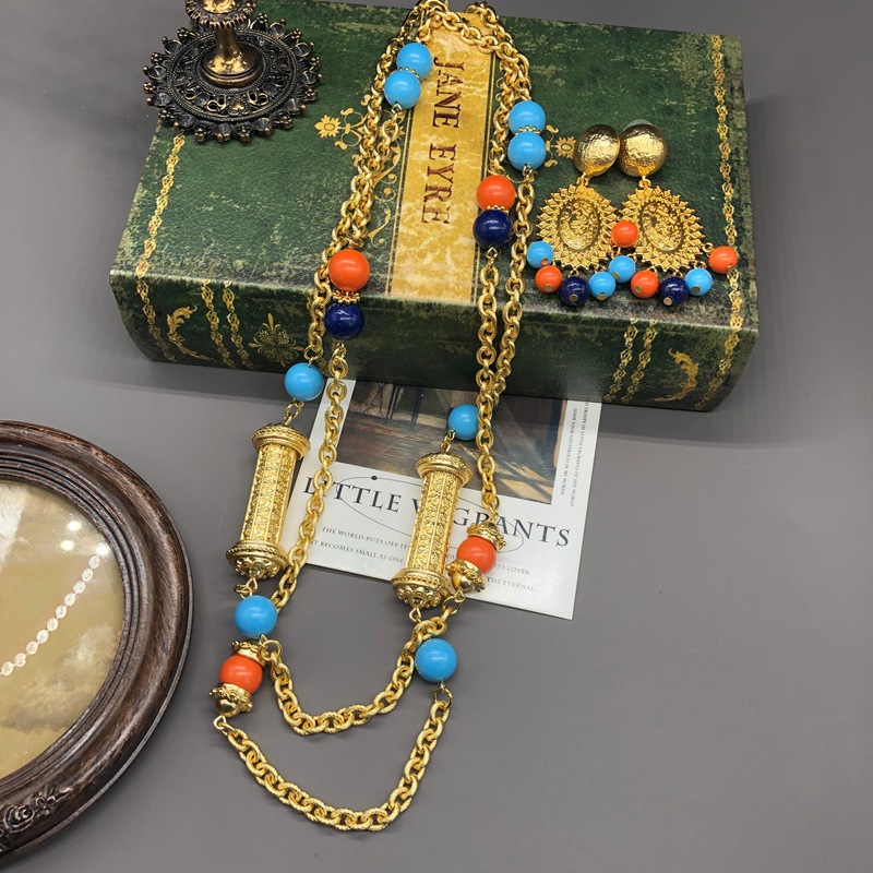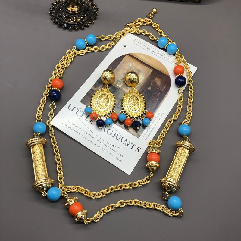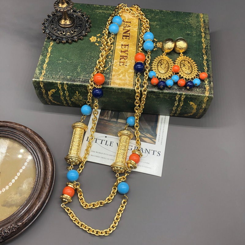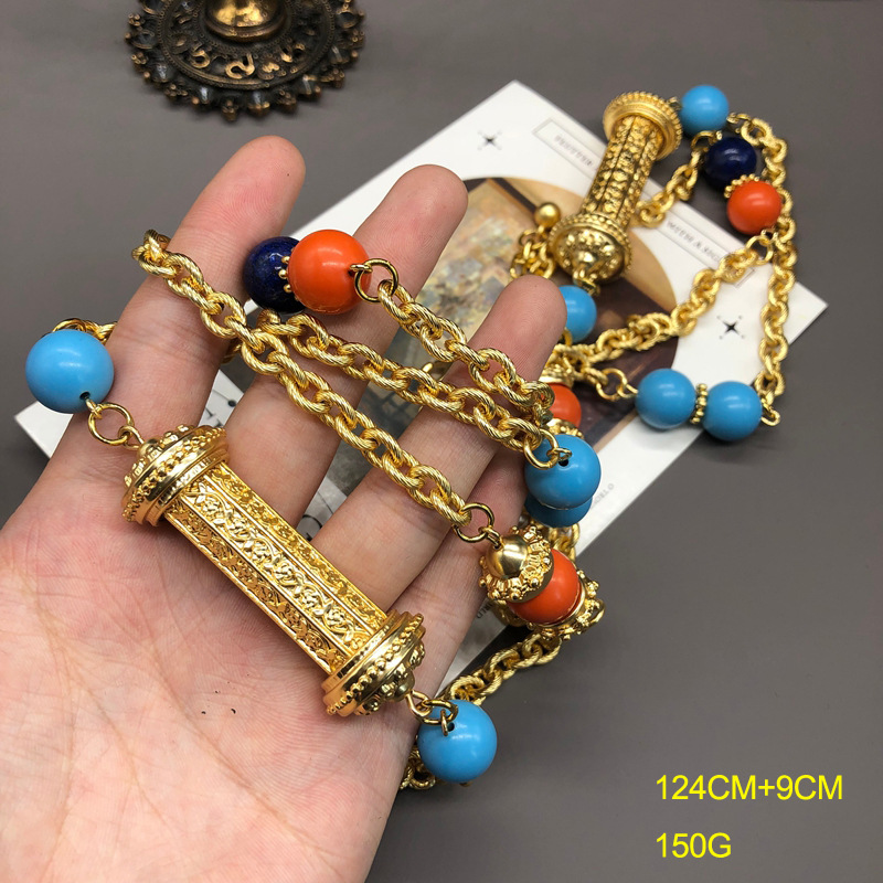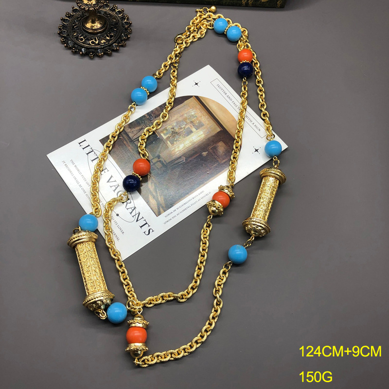 454666#Fashionable European and American color three-dimensional bead design, light luxury versatile long necklace, retro style plated 14k gold necklace