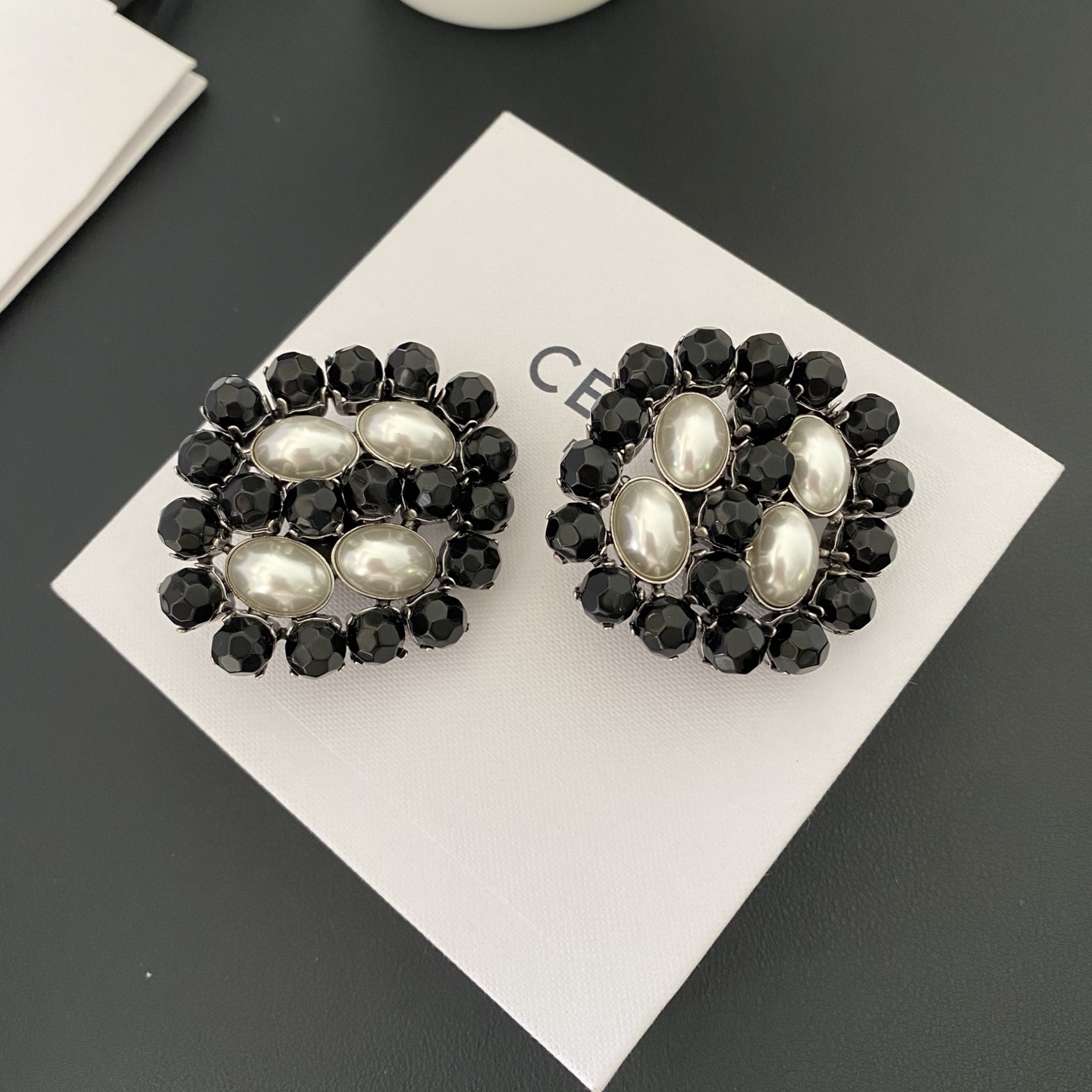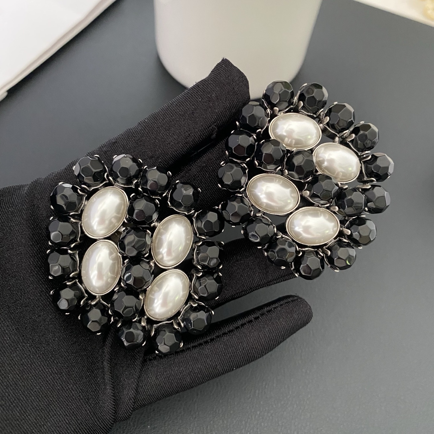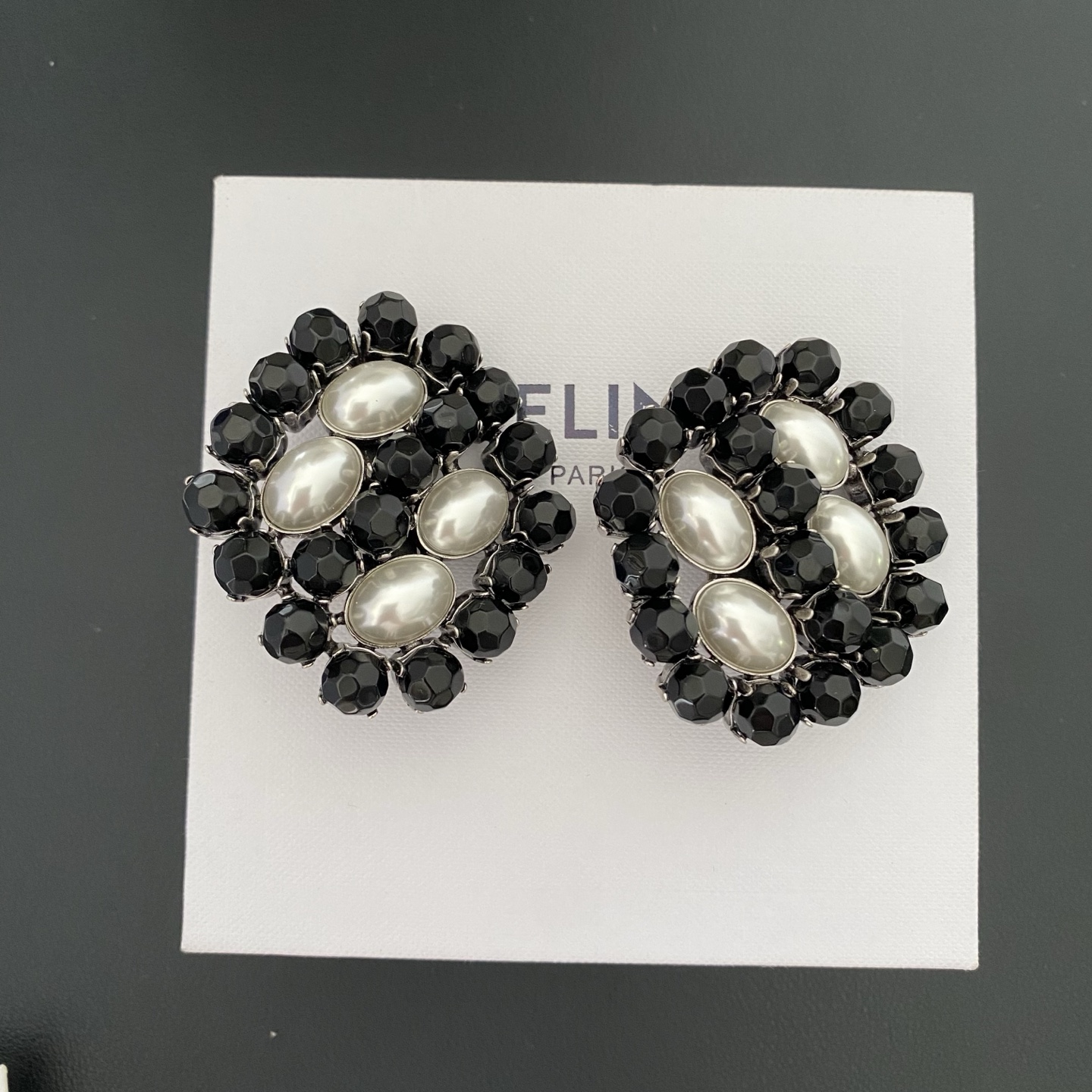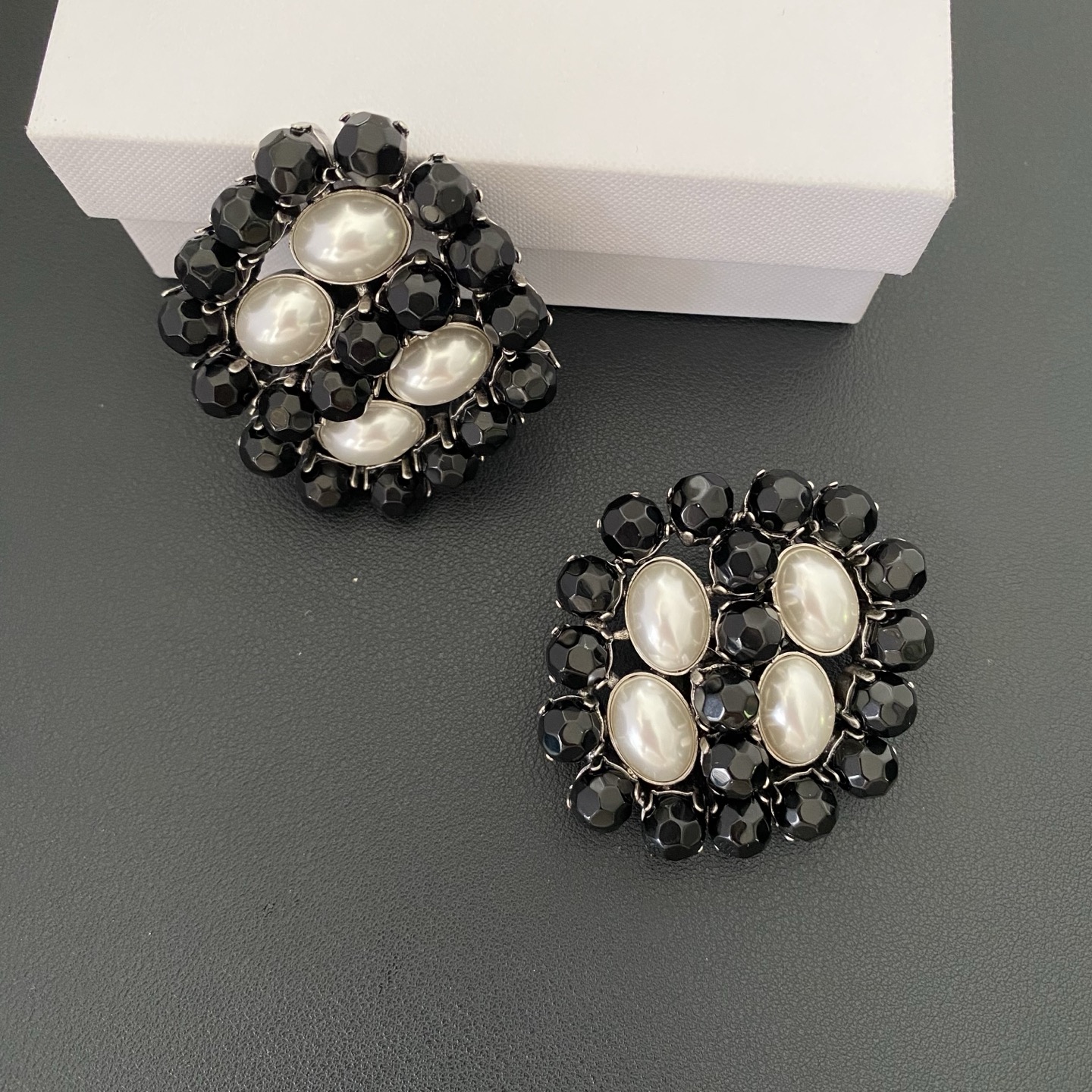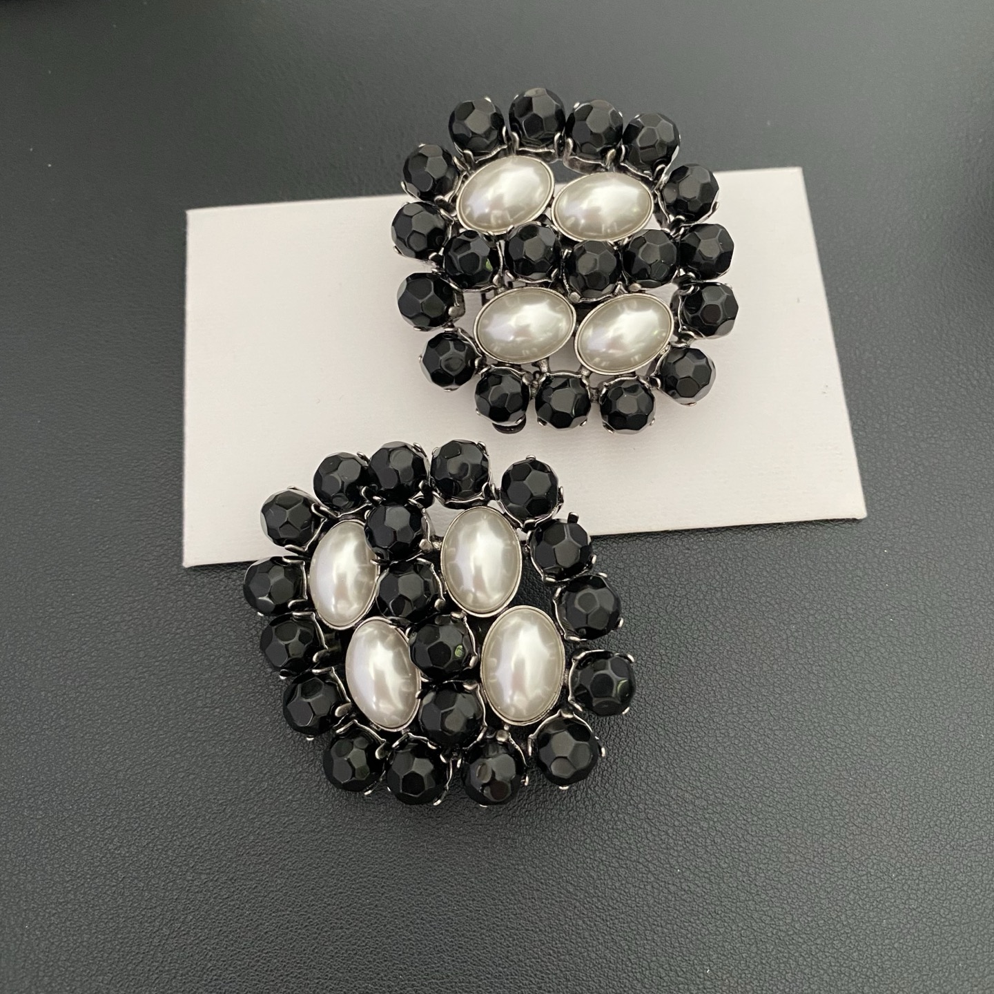 #464 French style niche vintage crystal pearl ear clips
