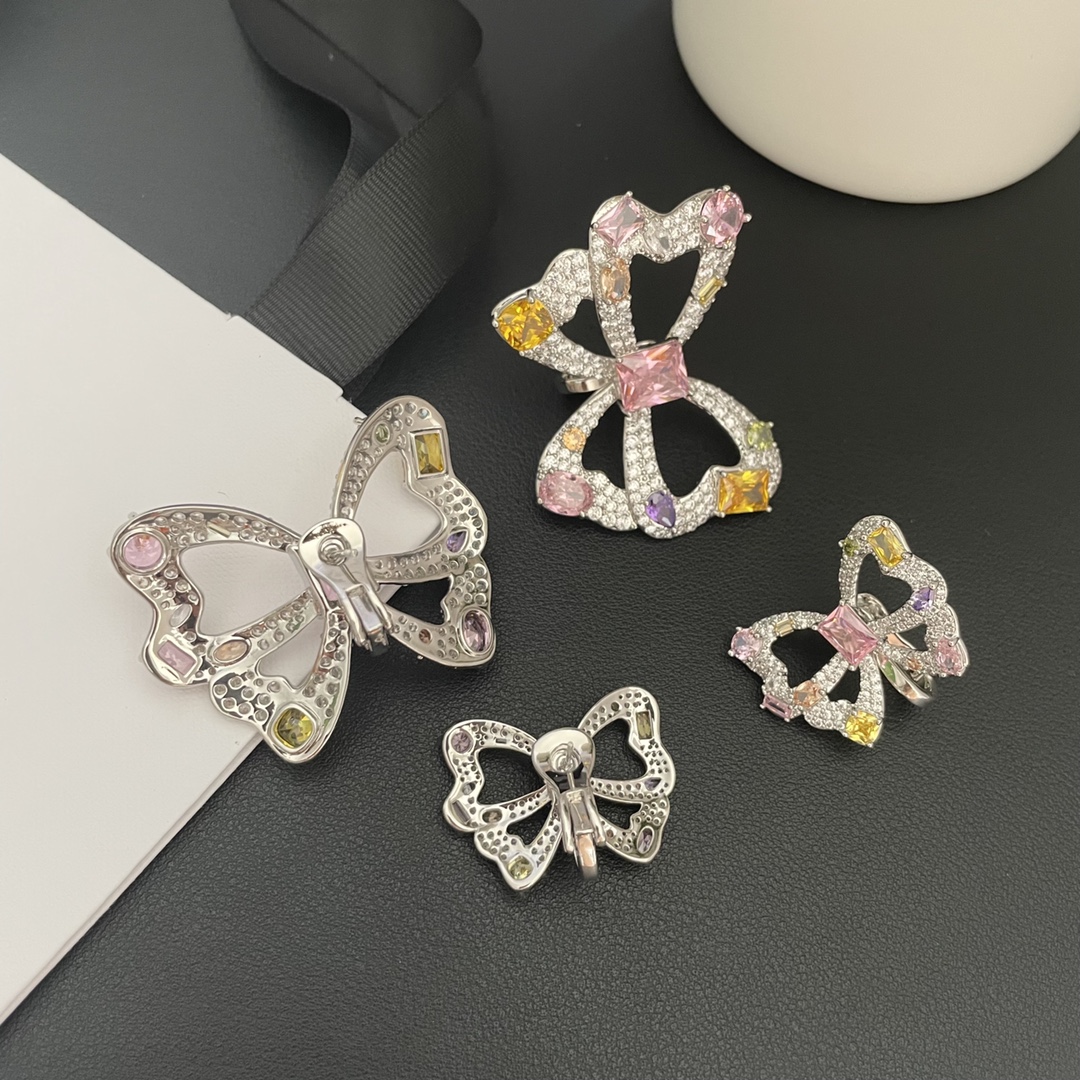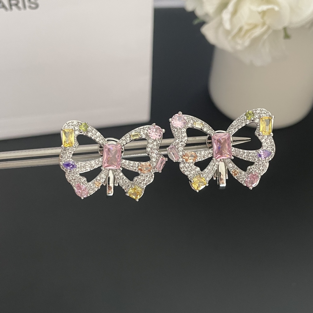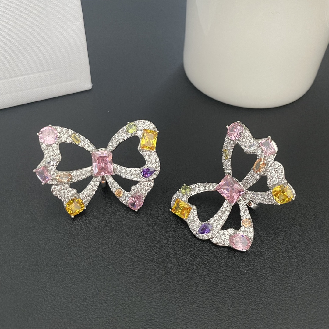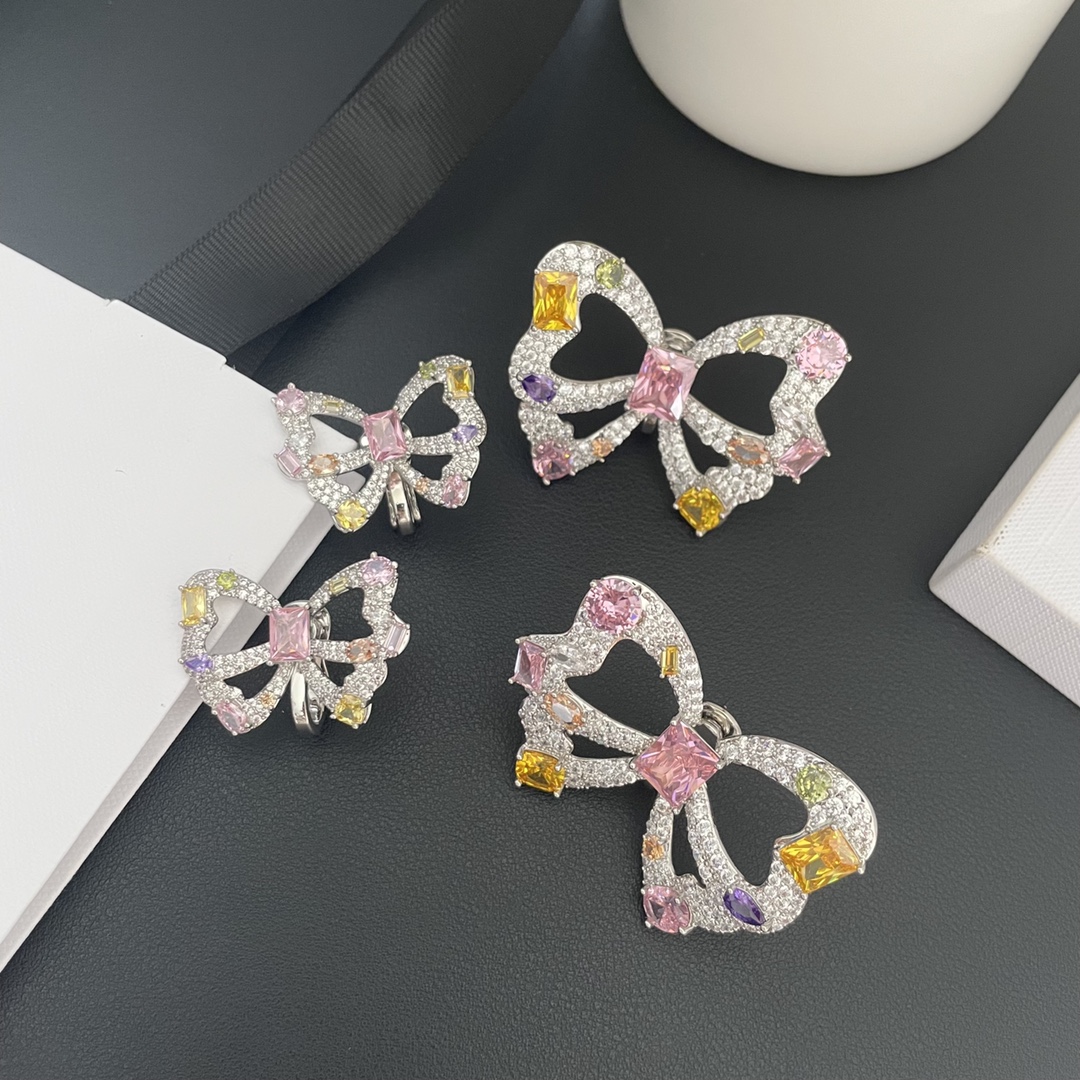 #489 Fashionally Sophisticated Exaggerated Bowknot Colorful Crystal Earrings