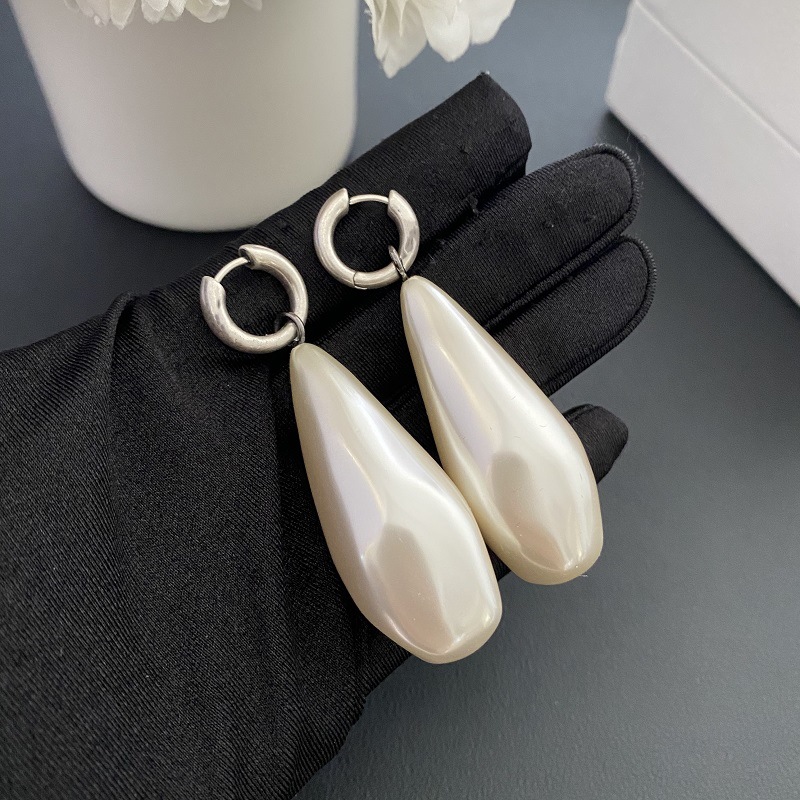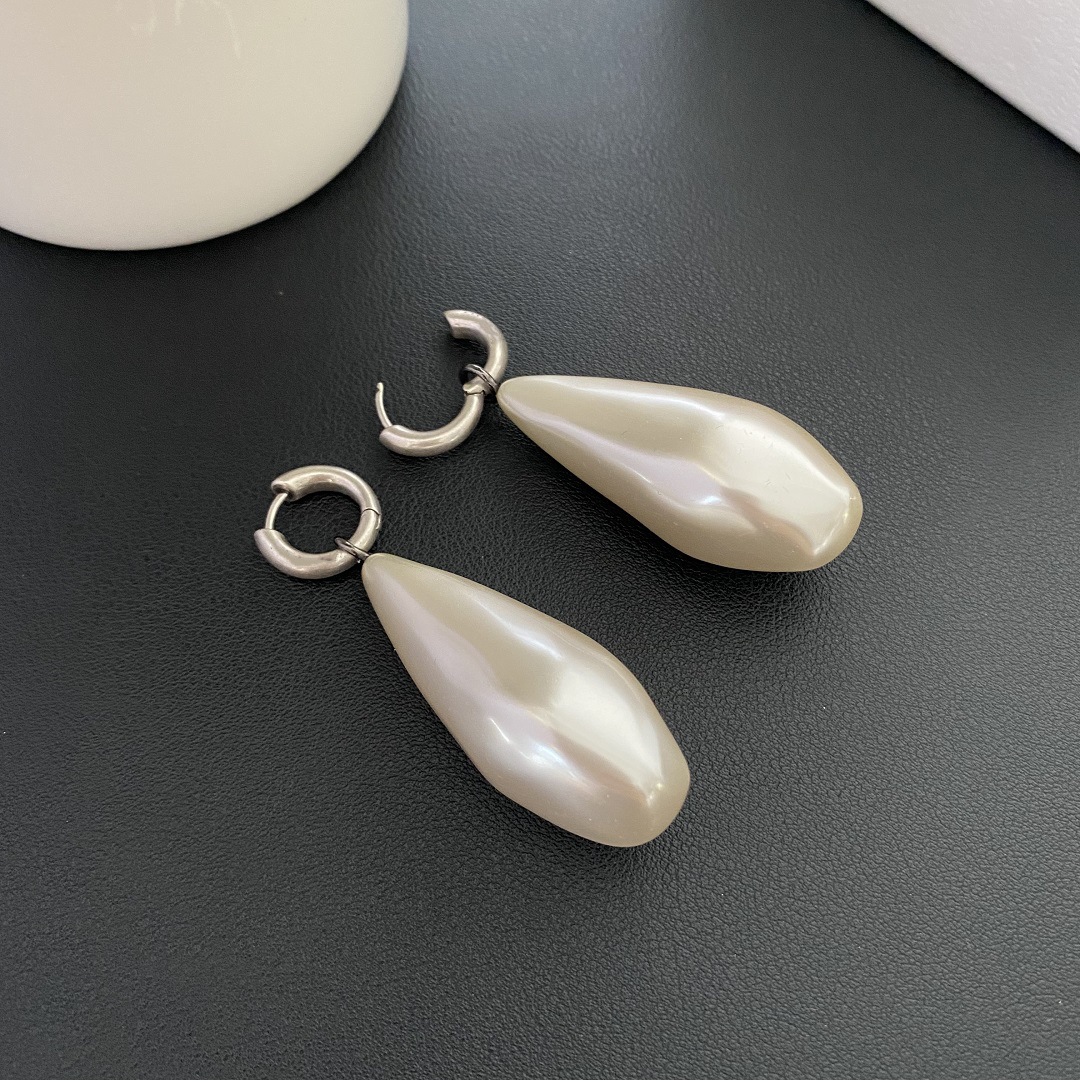 49366#European and American fashionable women’s retro silver pearl water droplet long earrings, light luxury ear buckle earrings