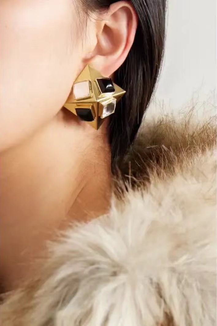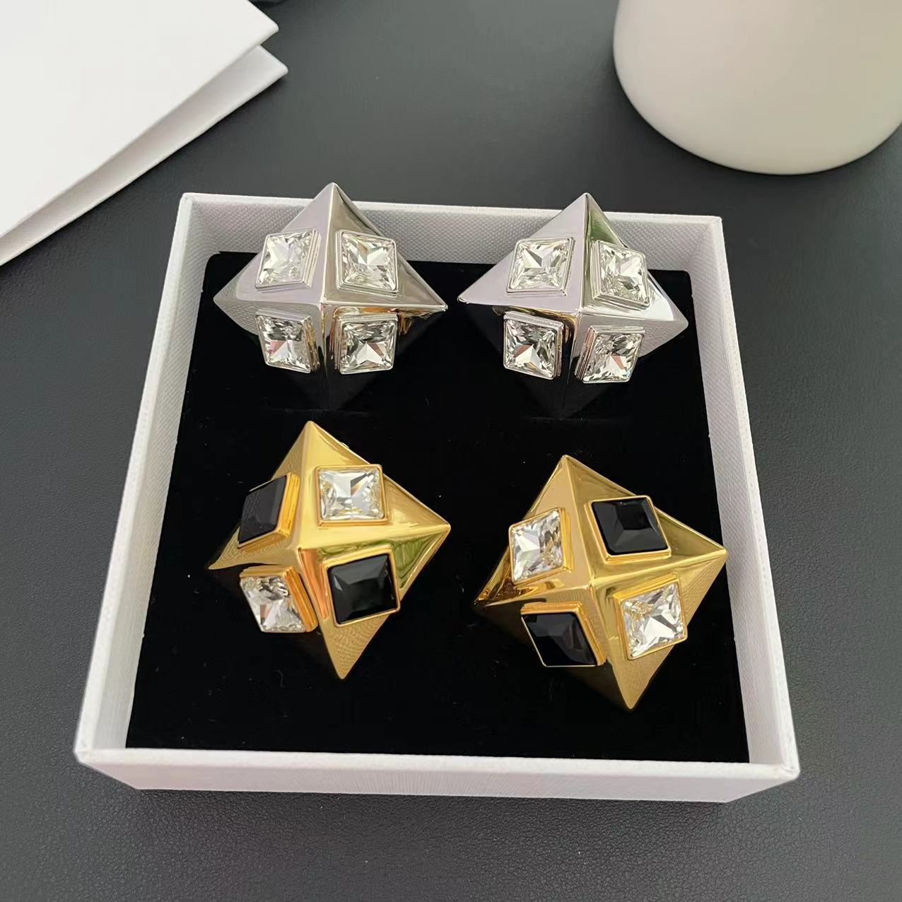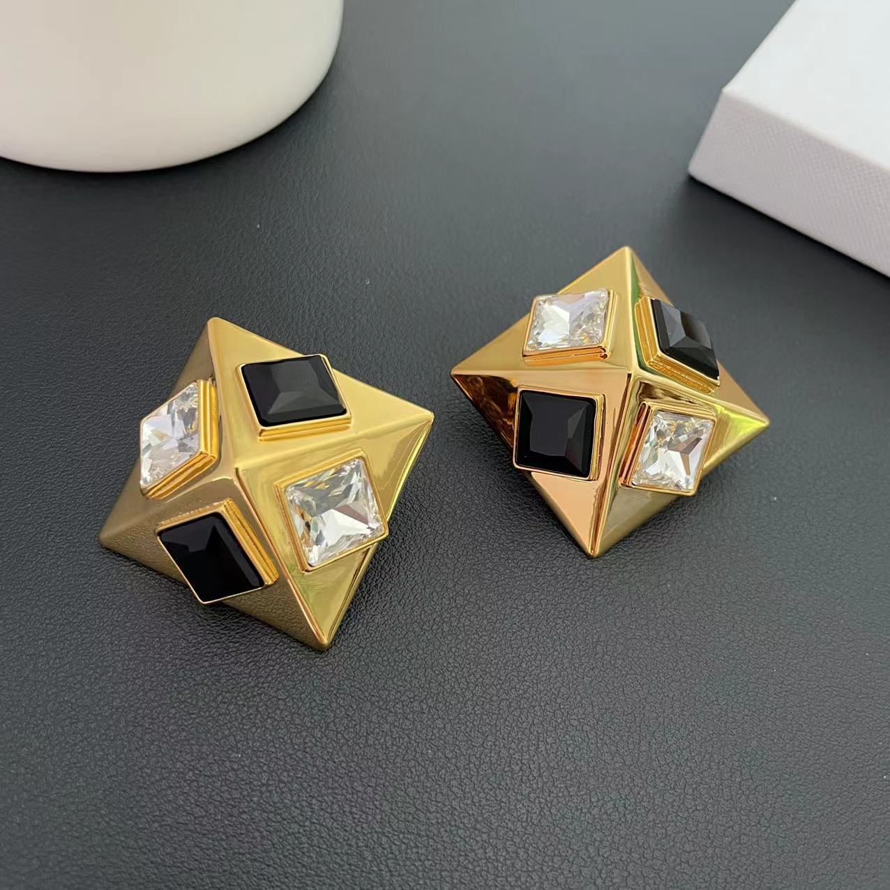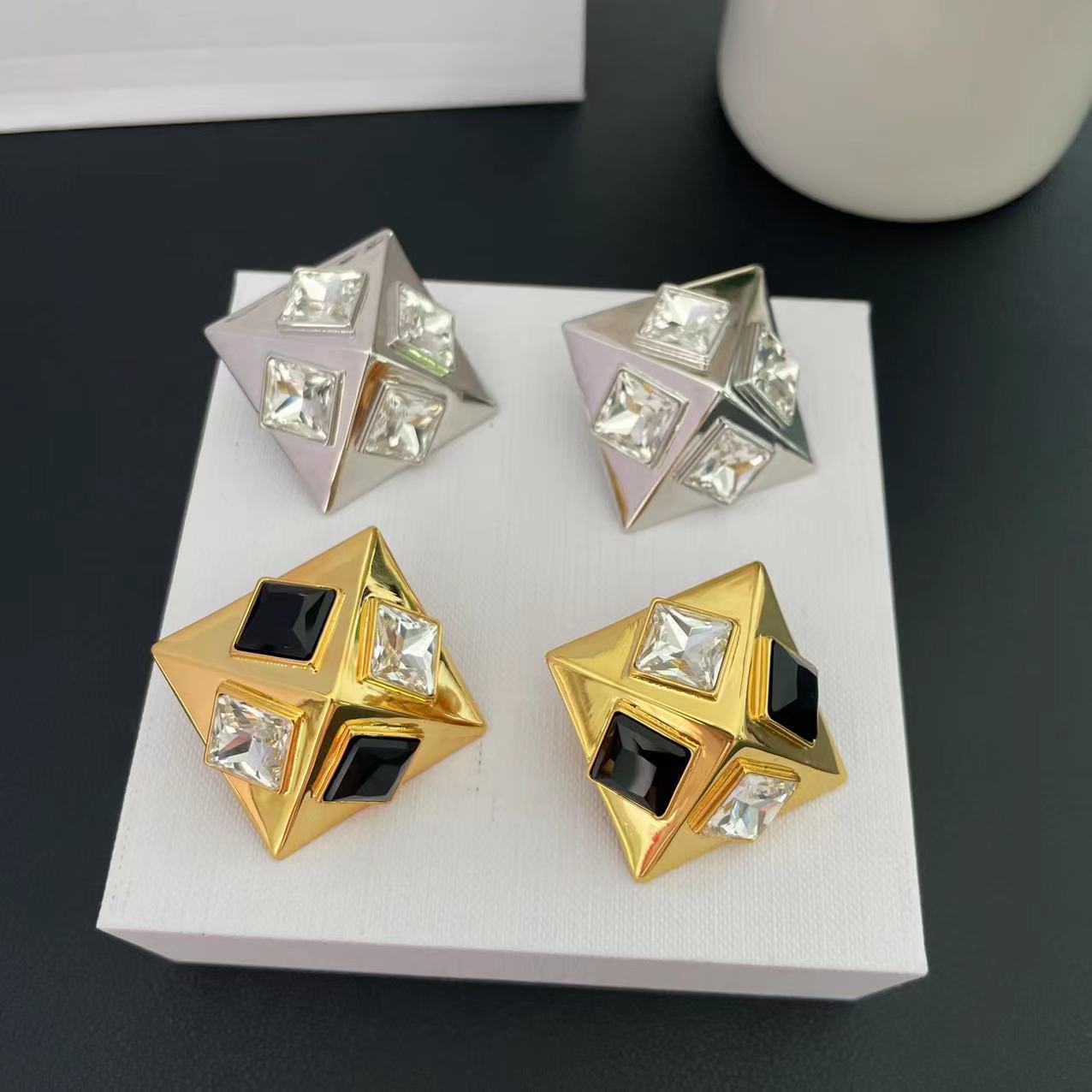 #532 Geometric Shape Crystal Ear Clips – High-end, Personalized, Fashionable, Exaggerated Style Ear Pendants