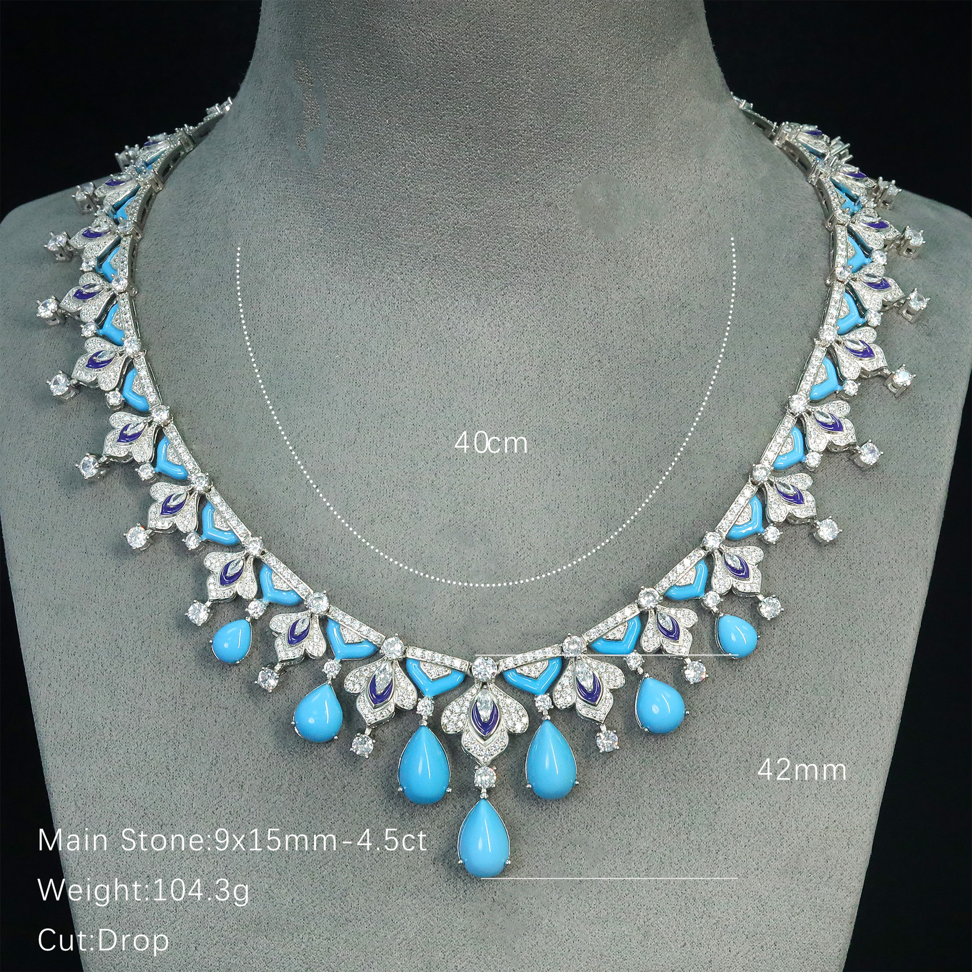 Material: s925 silver plated 18k gold, Mozambique diamond, turquoise