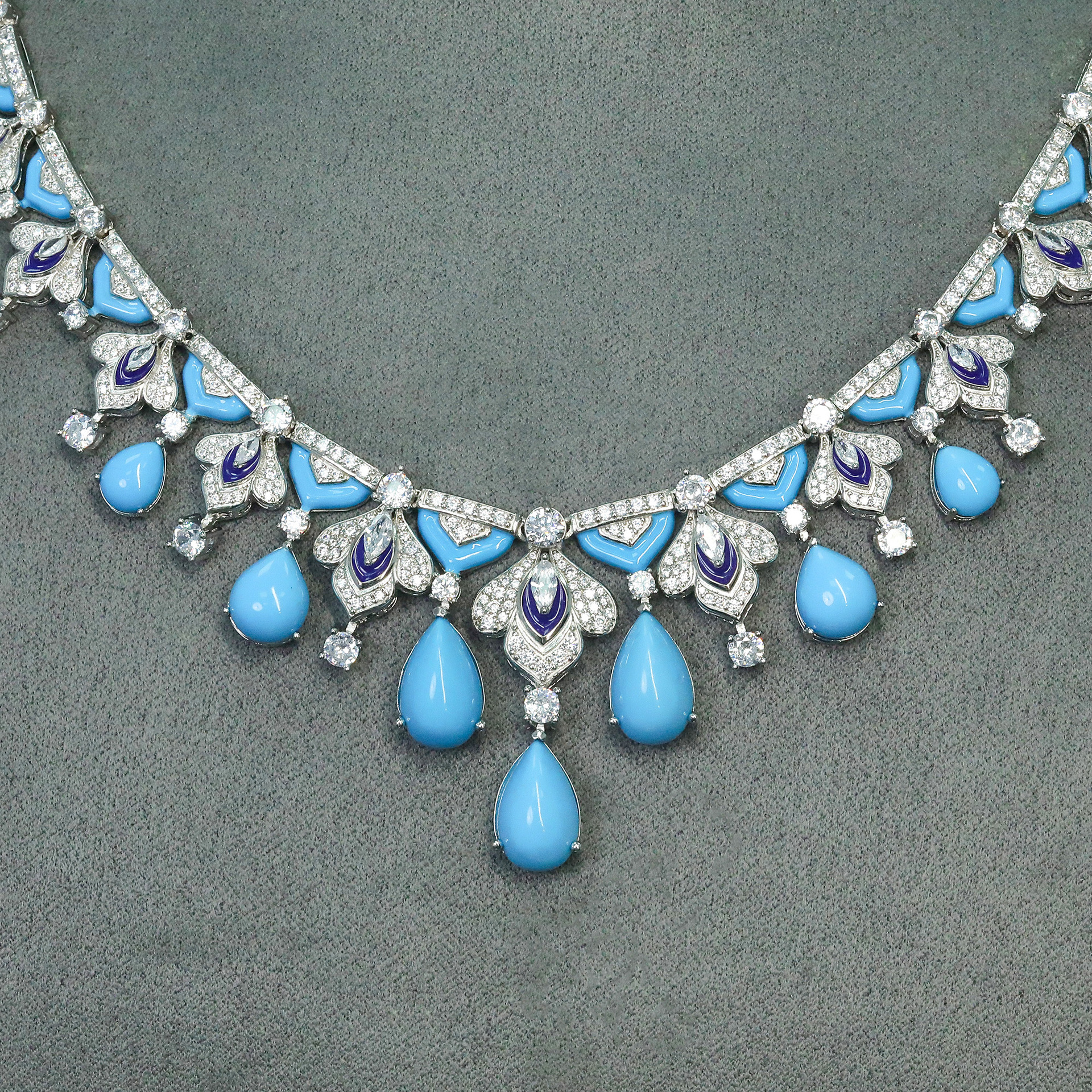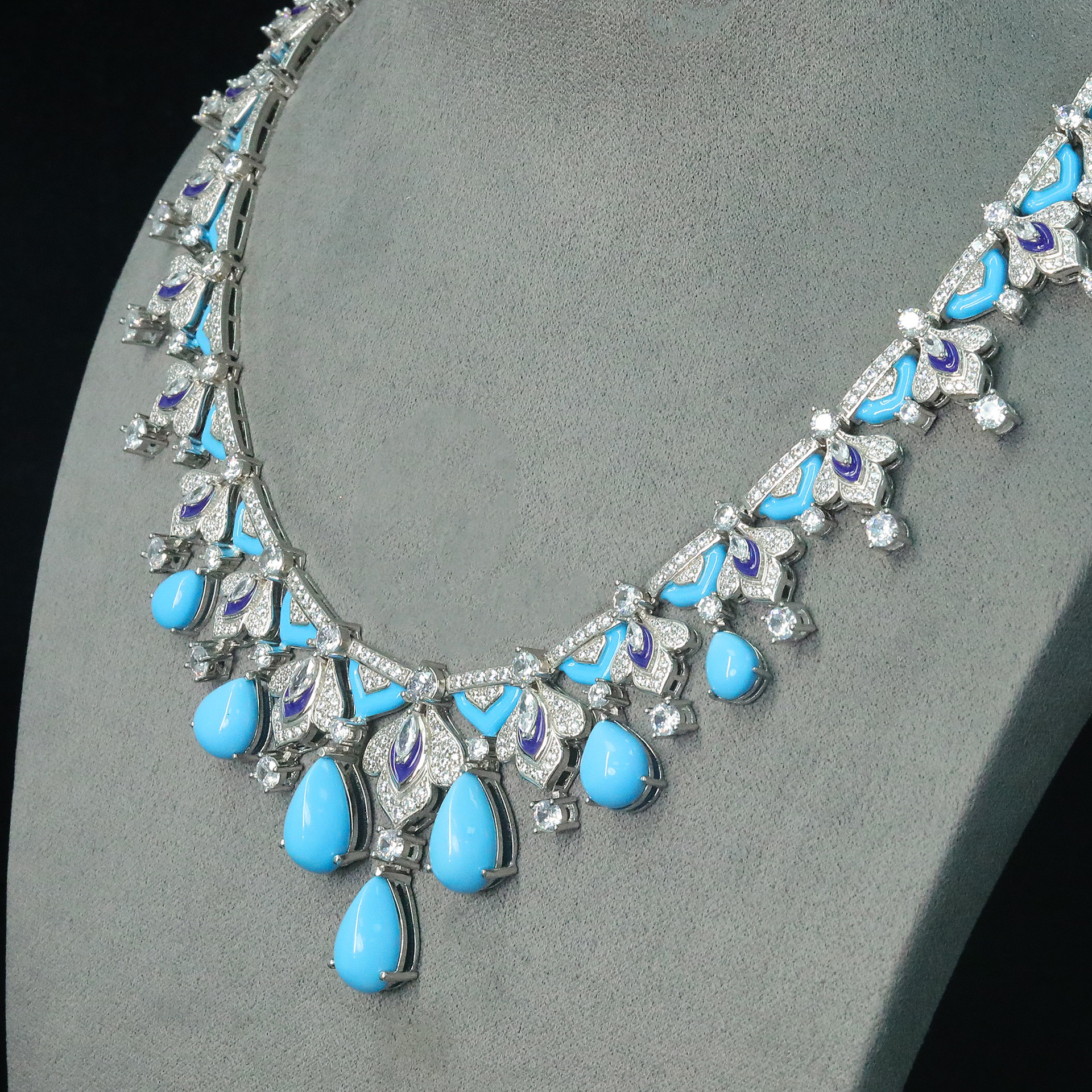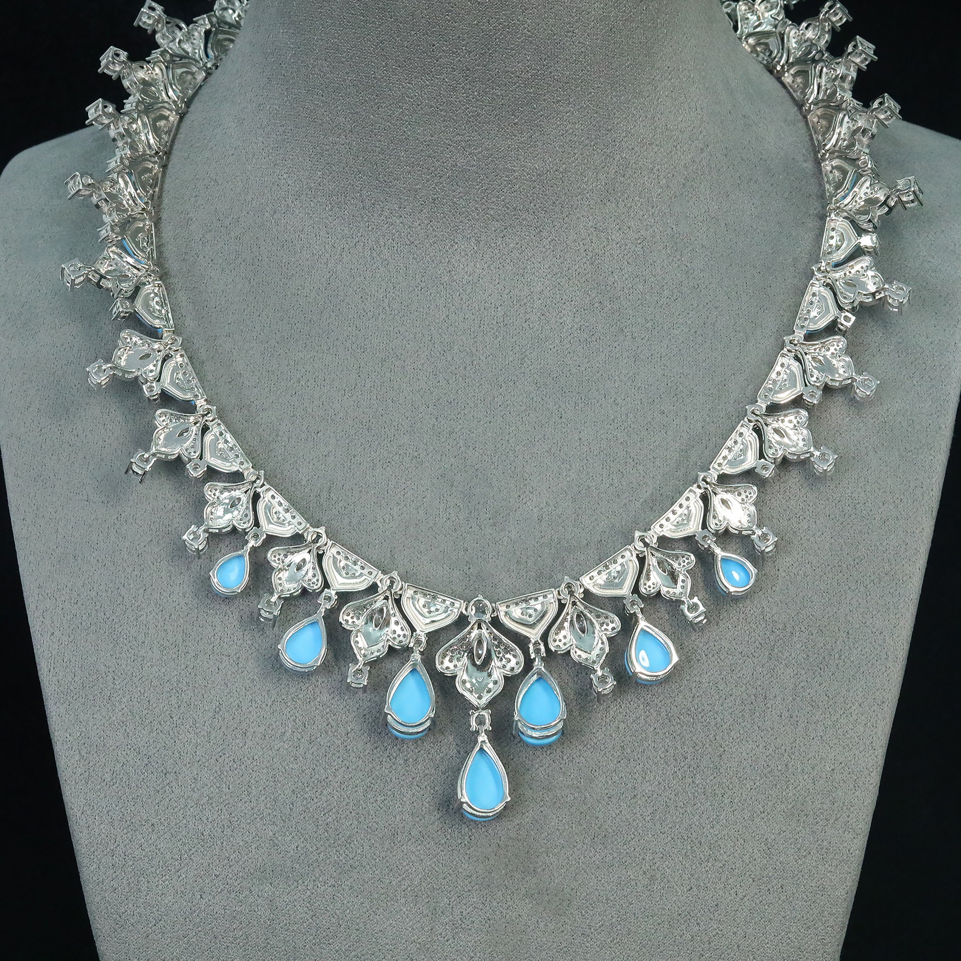 546#Fashionable and luxurious European and American s925 silver 18k gold inlaid moissani diamond natural turquoise jewelry set party holiday gift