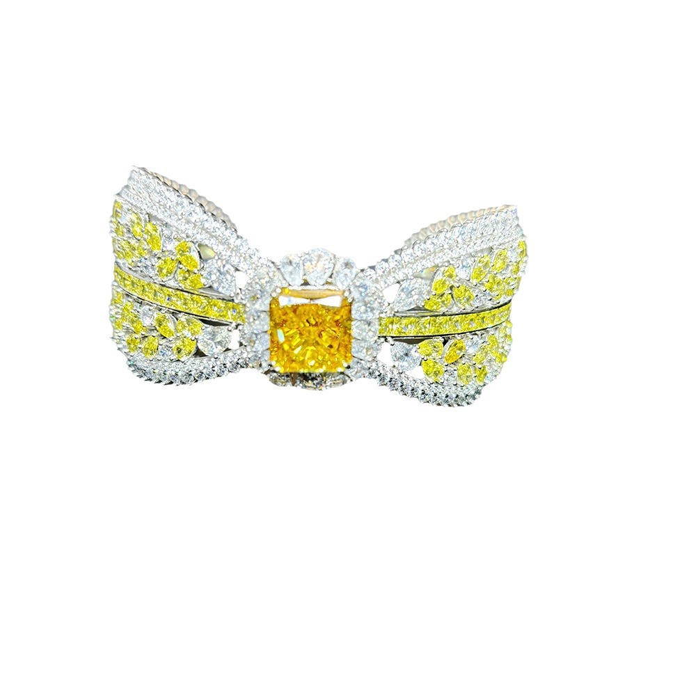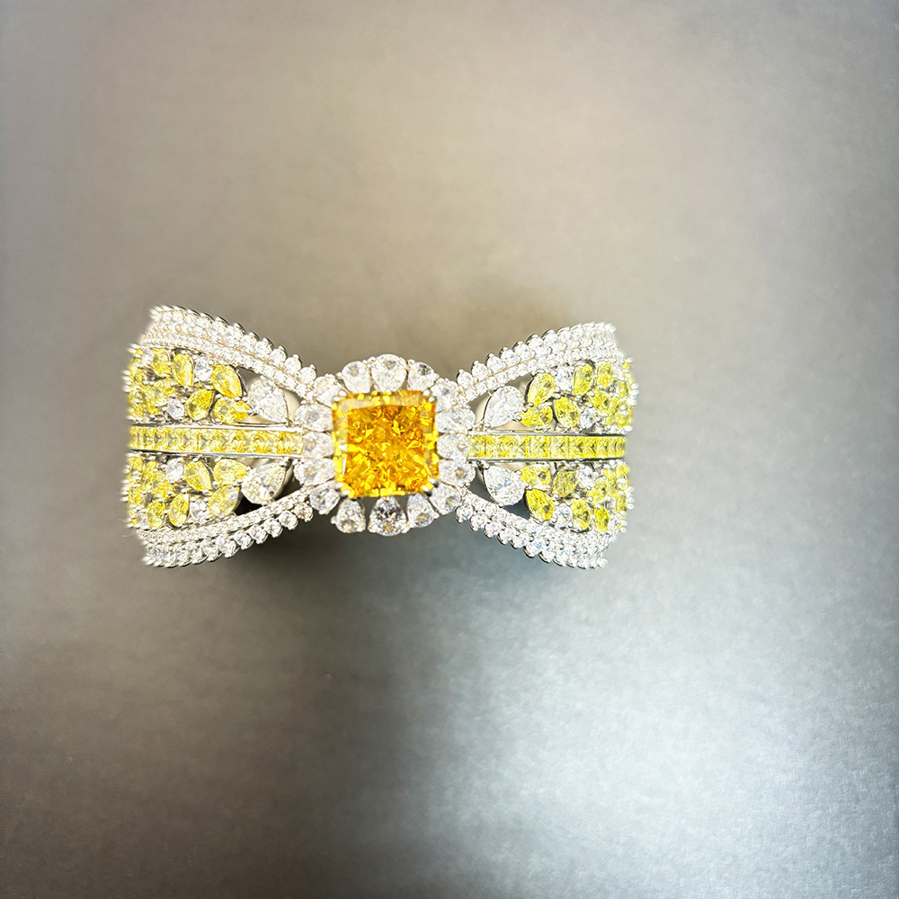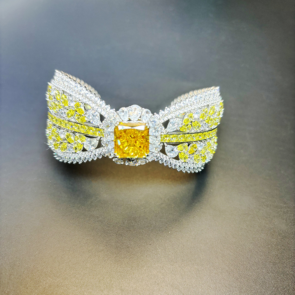 548#Luxurious wide bracelet – S925 silver with yellow diamonds, ice flower cut, set with moissanite. An elegant bracelet suitable as a gift for parties or festivals.