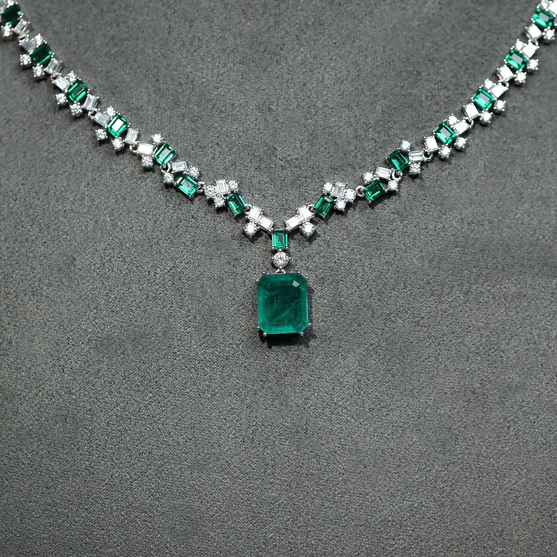 549#925 silver gold-plated necklace, high-carat diamond cultivated emerald, luxurious banquet jewelry, versatile for women’s necklaces