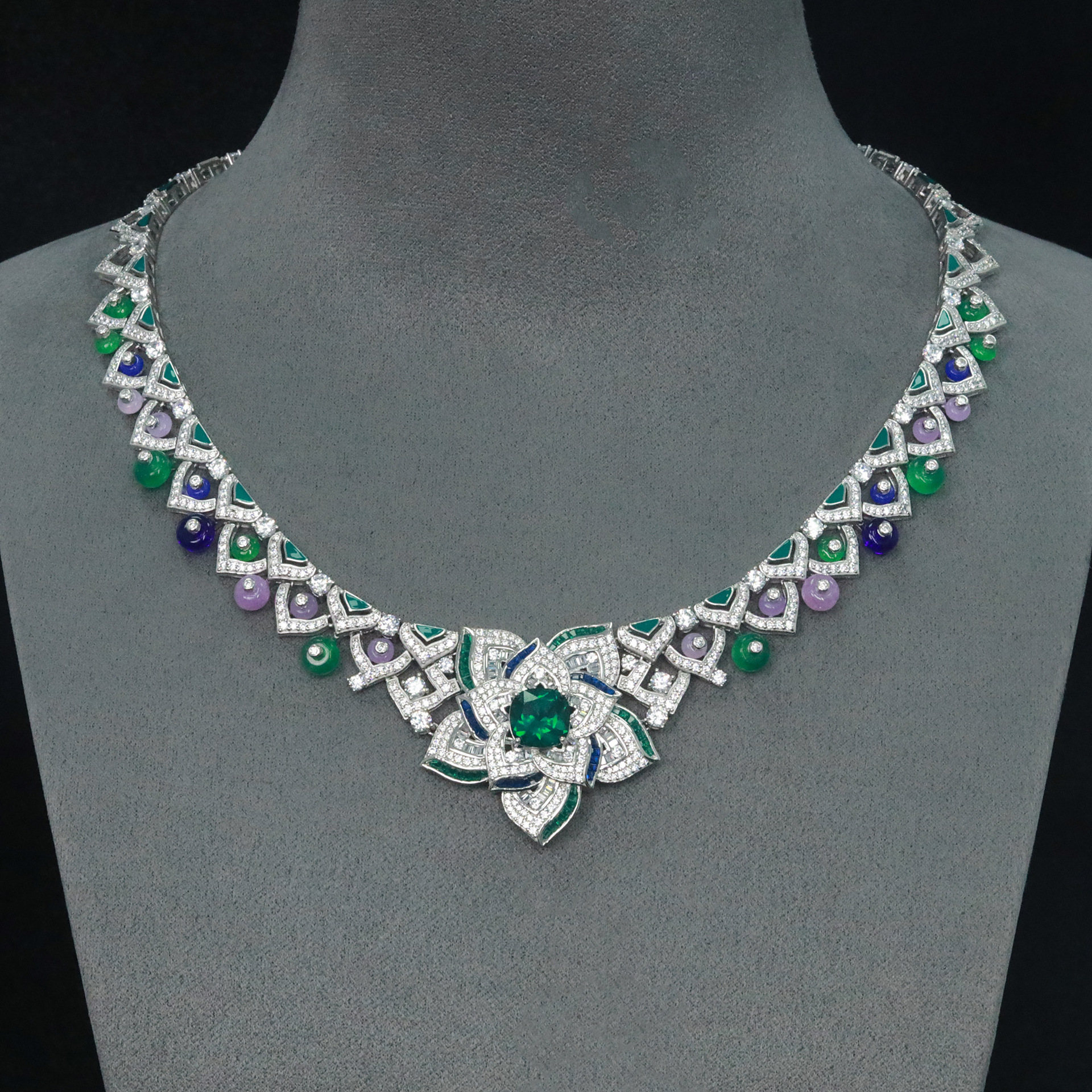 Material: 925 silver, Mozambique diamond, cultivated emerald
