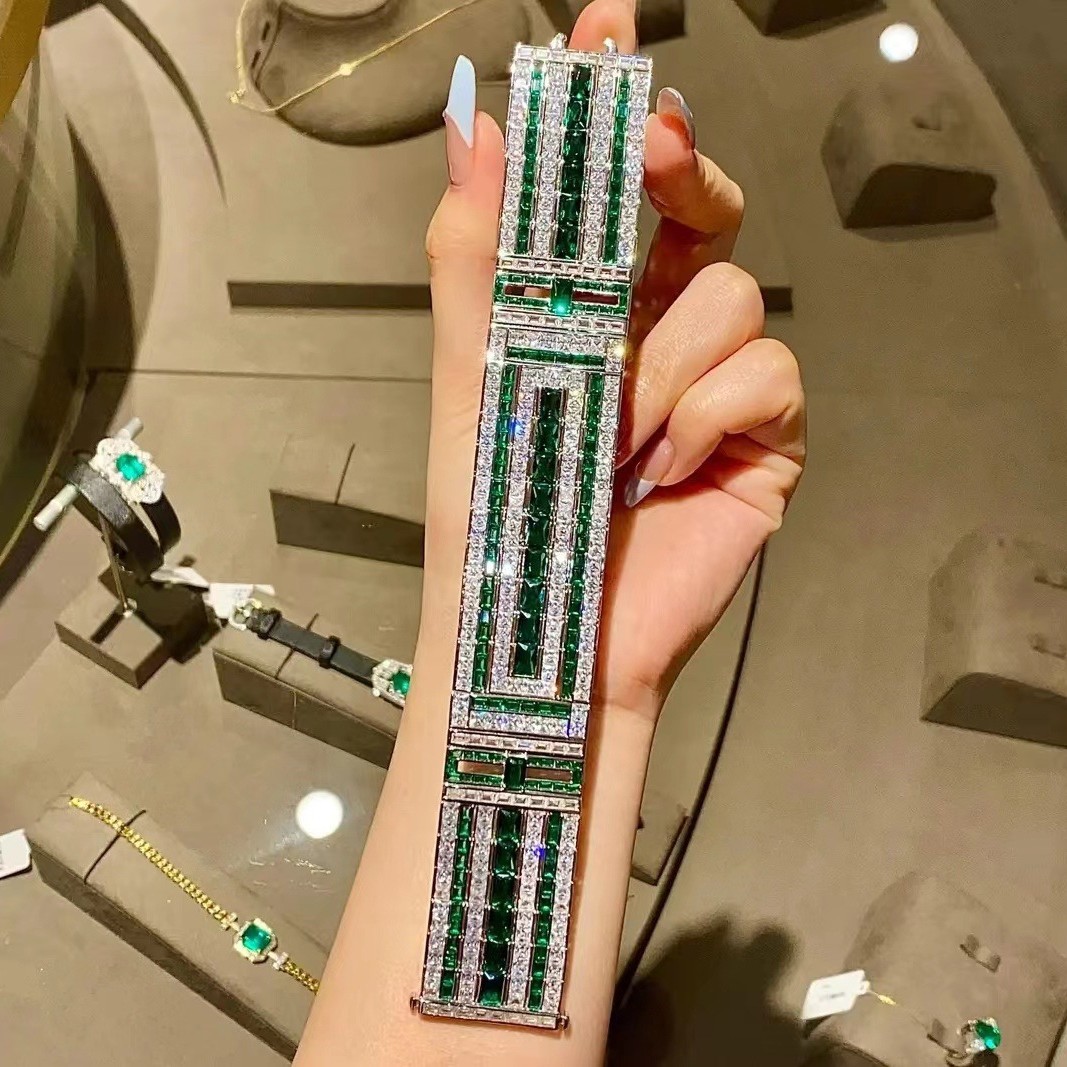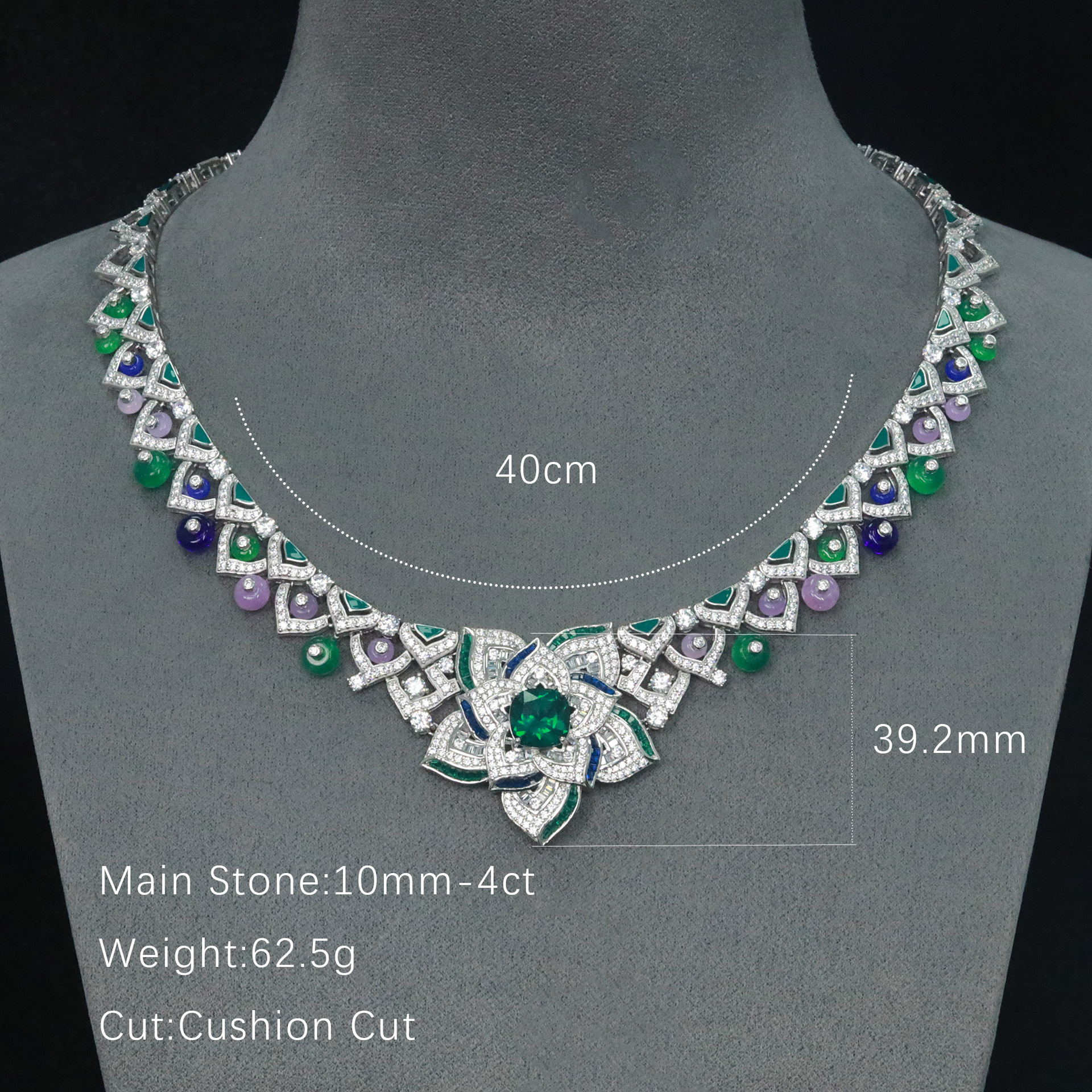 550#925 silver plated K gold moissanite diamond fruit bag 4ct fat square wood with green luxurious dinner dress necklace