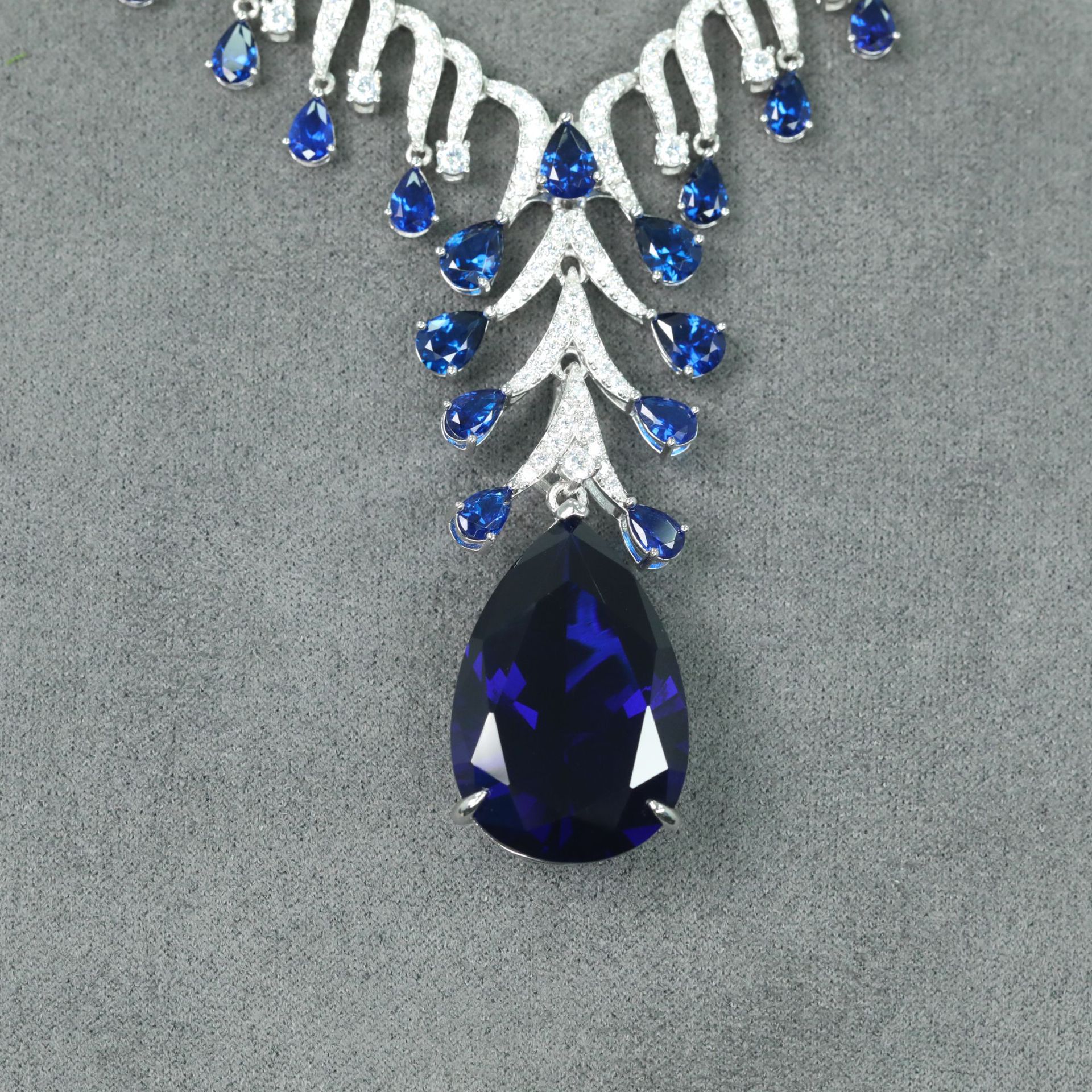 552#925 silver plated with 24 karat gold 24K gold necklace with high-carat diamond, royal blue water drop, graduation ceremony festival jewelry, girls’ necklace